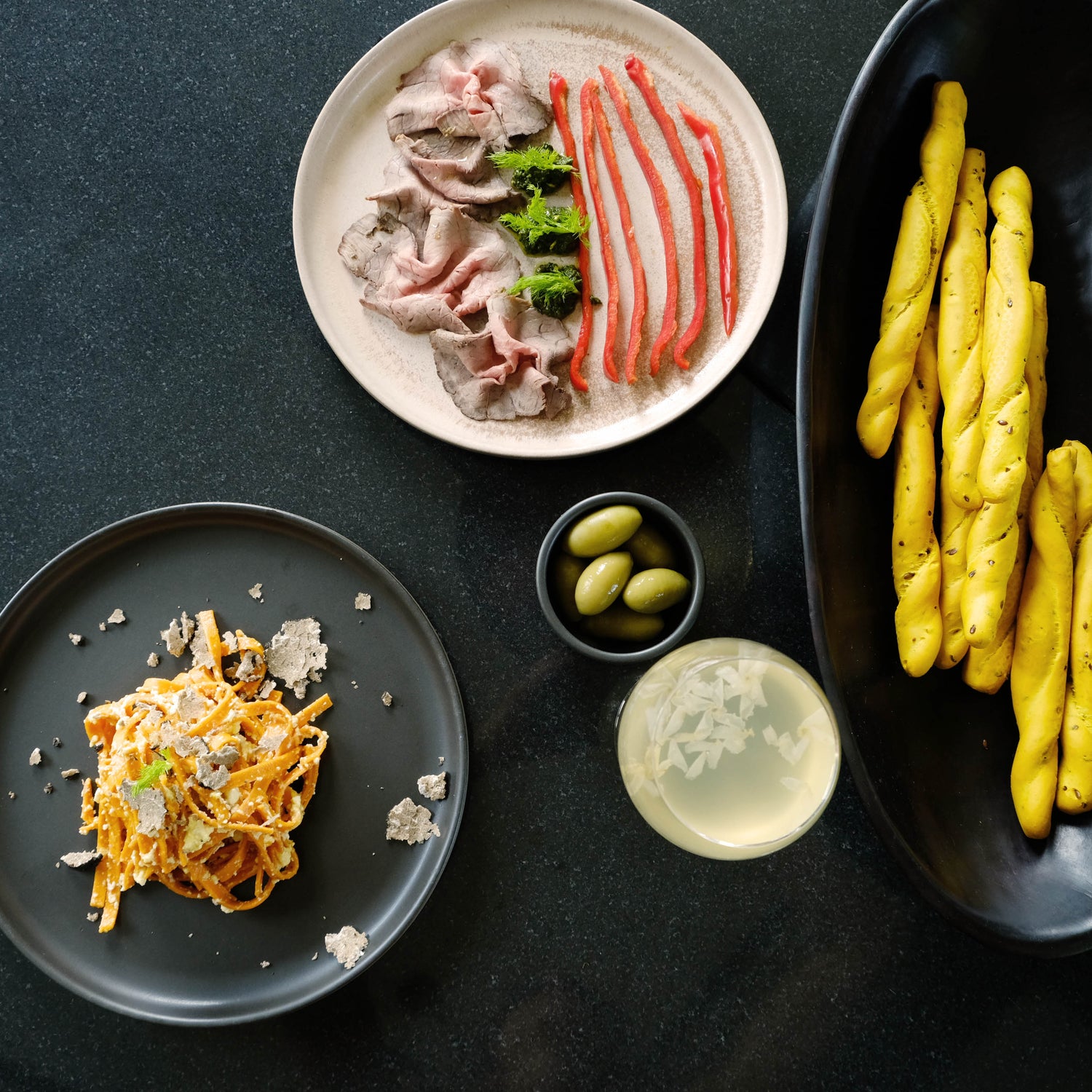 Lietzensee – Brunch in Black & Dusty Rose – 4 Large Plates (with or without Dip Bowls)